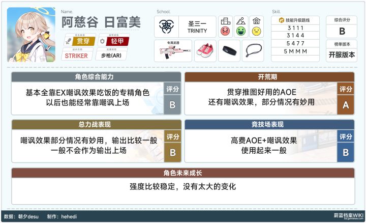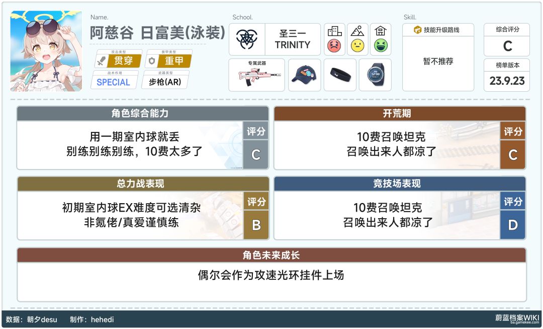 泳装日富美 综合C 开荒C 总力B 竞技D