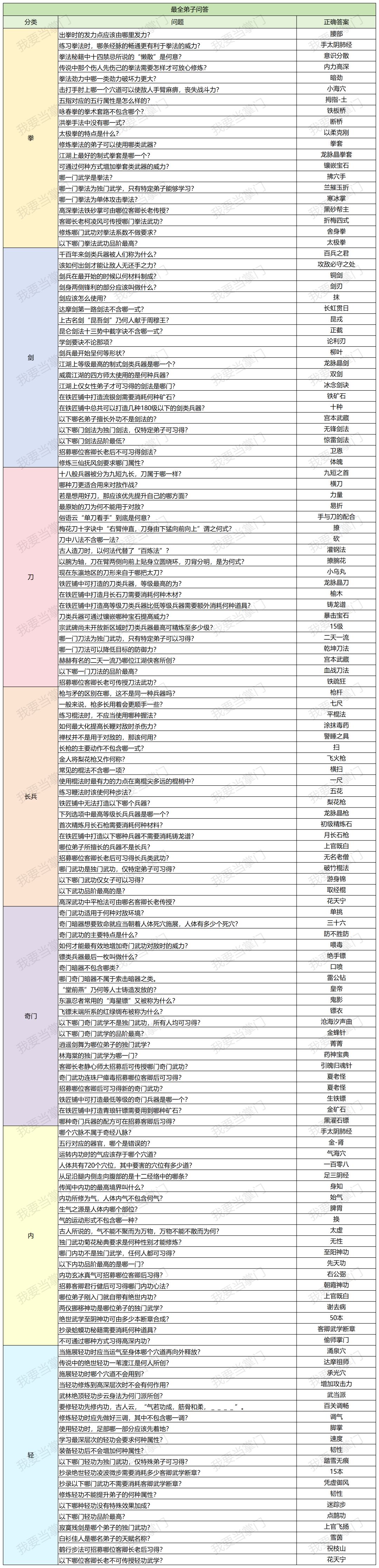 为了更加方便掌门查看弟子问答的攻略,小师弟我整理汇总了
