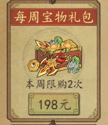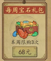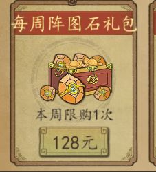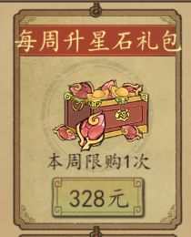 每周阵图石礼包和宝物礼包,月卡党不建议购买。中氪以上可以开局买入,快速提高武将战斗力。性价比:★★★(三星)