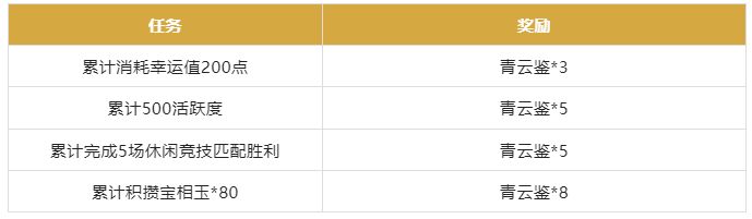 10月12日0:00~10月18日23:59,每日登录签到可获得青云鉴*1。