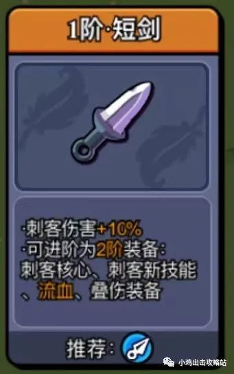 ·刺客伤害+10%·可进阶为2阶装备:刺客核心、刺客新技能、流血、叠加装备