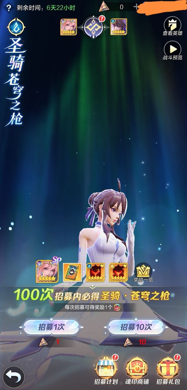 不氪金只能抽70次,但是100次保底才能出一个SP。进度不能保留到下一次【SP心愿招募】,积分也不能保留,活动后所有东西清零。