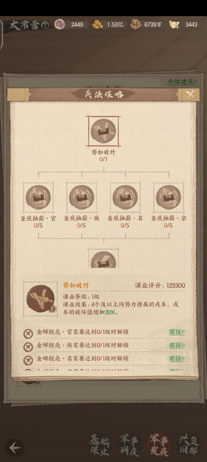重点就是绒车了,前期绒车上五个主力,就是你郡县阵容是啥,九州绒车阵容是啥。等解锁课业精研的军事发展——兵法谋略之后就可以用4+1保持更高战力了。这个4+1说的是势力(如图),别搞混了比如四个武者配一个方士等等都可以,