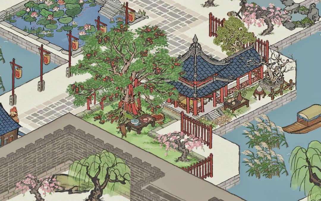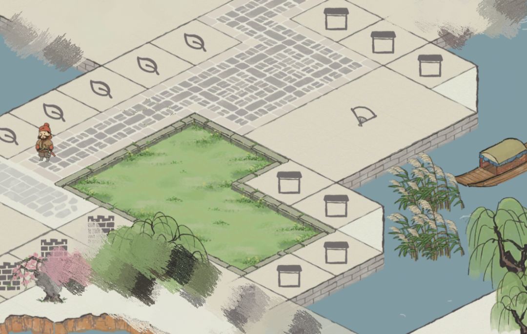 非常小的一角,这两个颜色比较搭,就打造成水边的亭子