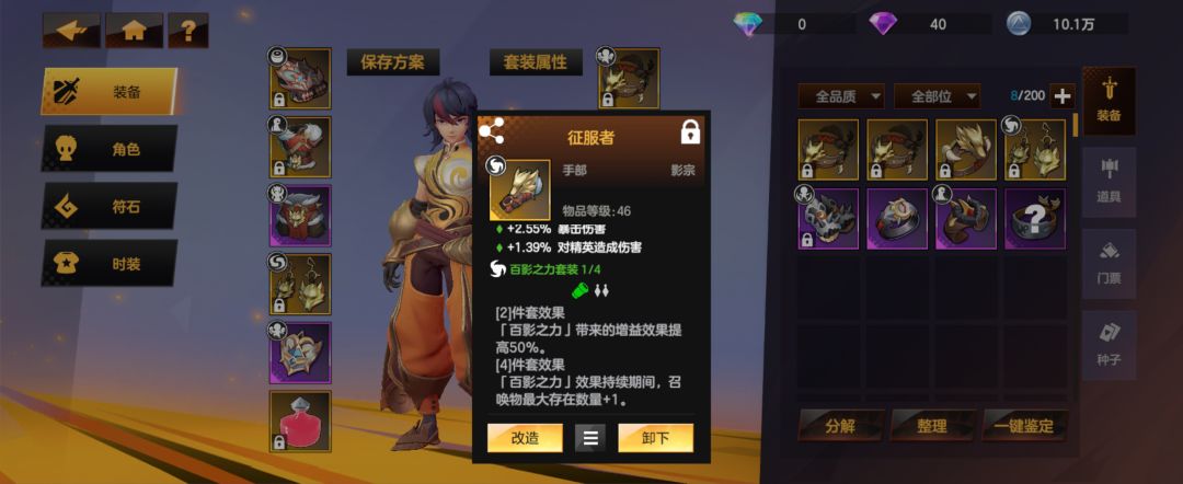 ④套装方面目前只做了元气具象4件套,多一个影子数量,并且召唤的概率更高,基本上可以保证全场都有3个影子