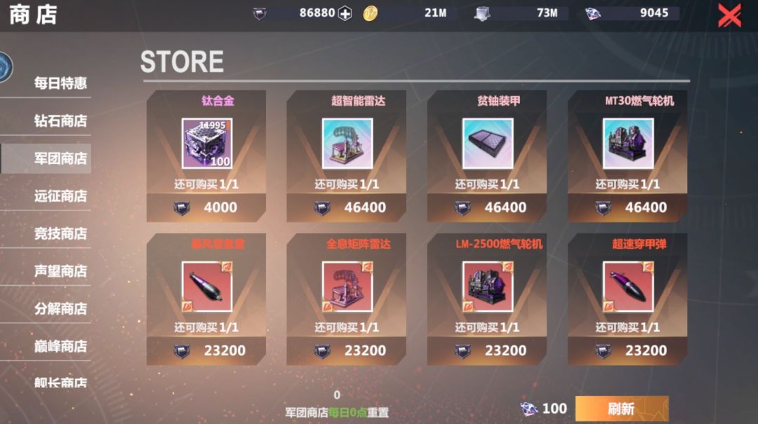 军团商店:消耗军团贡献购买战舰的配件,大幅提升战舰的作战能力