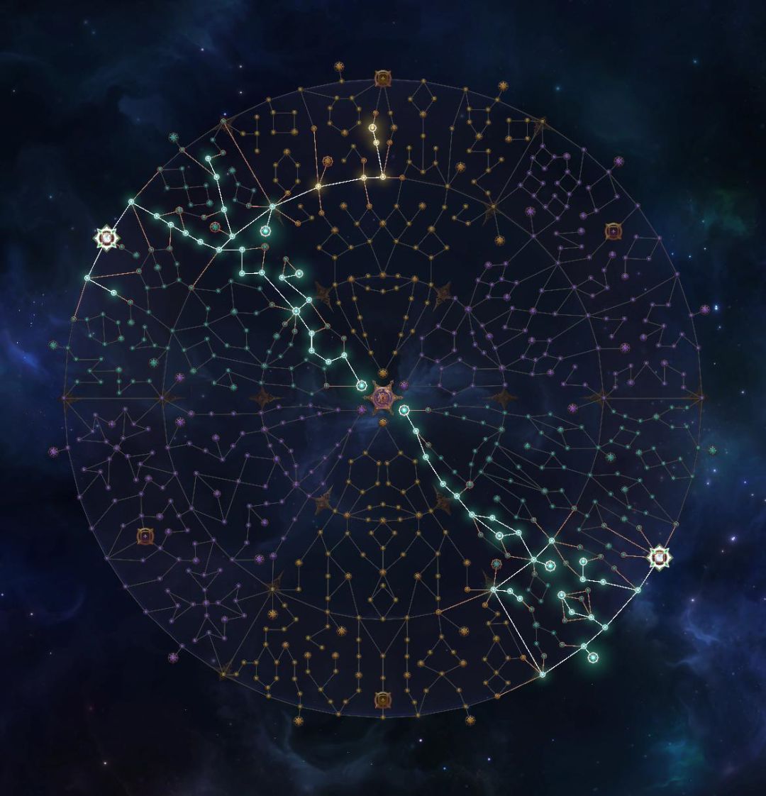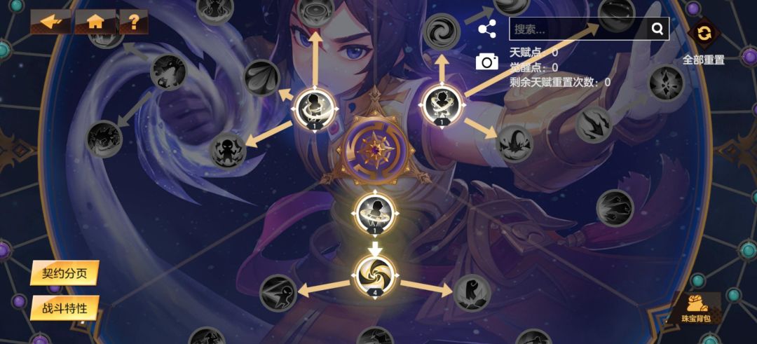 天赋如图,但是我觉得我运气真是好,一开始就获得了可以从左上角跳到投射物区域的跳跃宝石(相当于终极追求)
