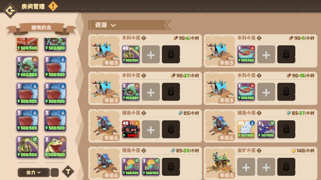 小屋储备有限,记得时常登录收取资源~同时也要及时让没有体力的龙去龙舍休息,合理工作和休息才能利益最大化。