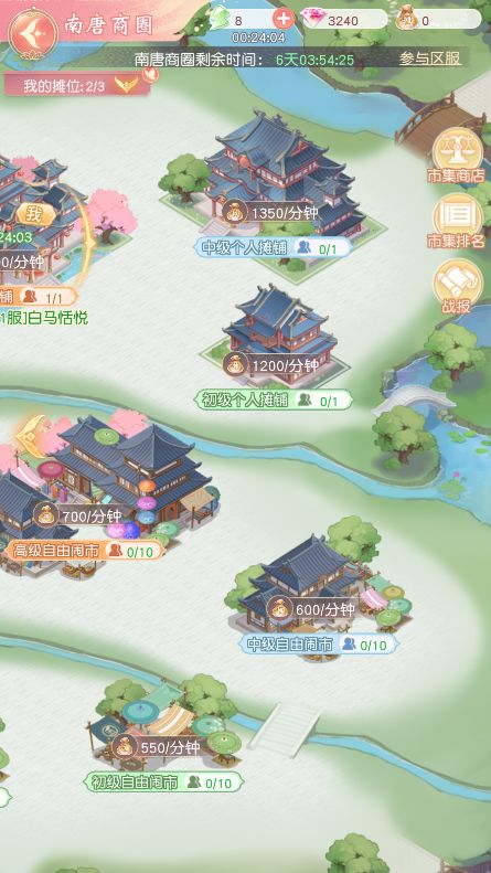 虽然掌柜已经获得了京都的店铺,但是其他城市和商圈的收益也不能放弃,掌柜可以派遣伙伴前往市集或者商圈进行摆摊获取收益。
