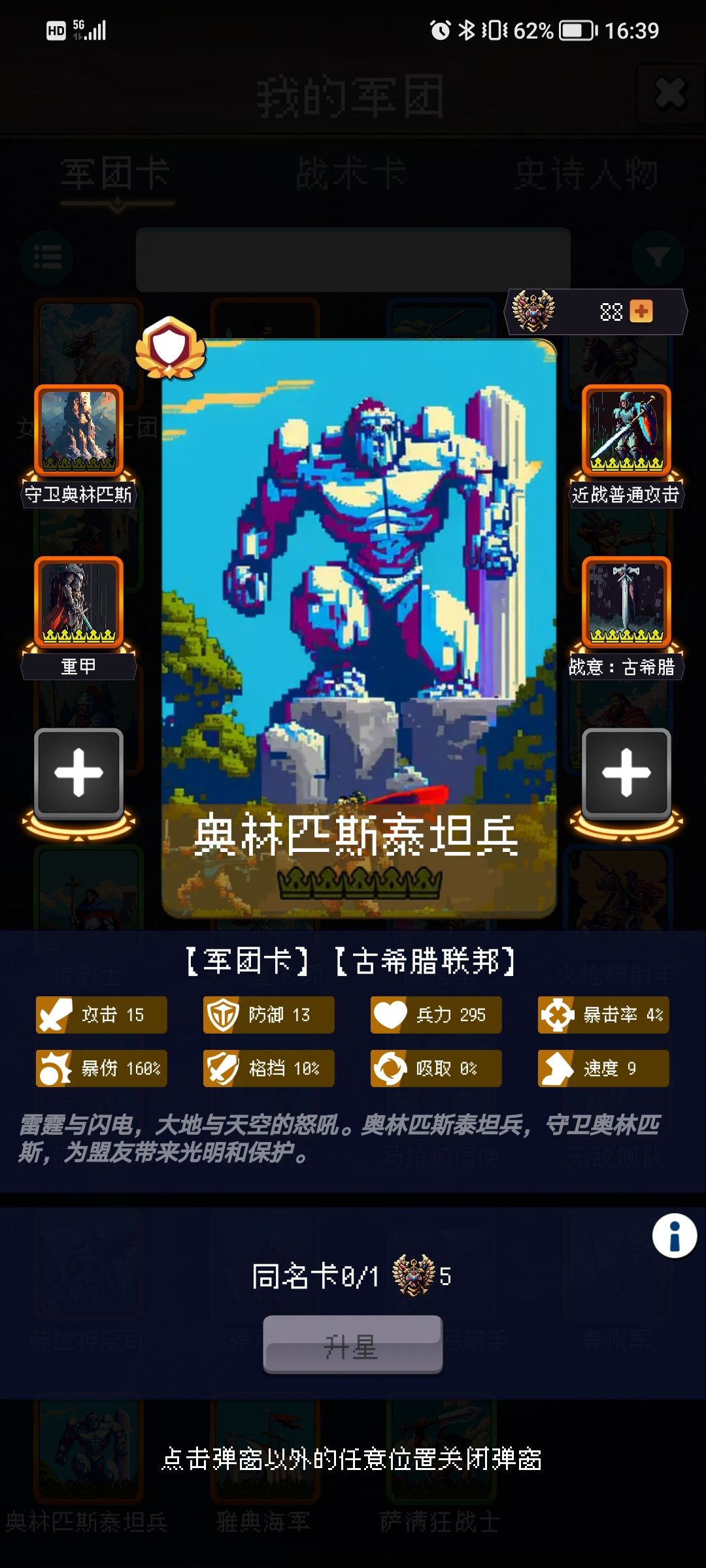 评价:步兵辅助角色,加成不错 但是有点随机性要绑定古希腊卡包使用,而且无属性加成,存在一定局限性。