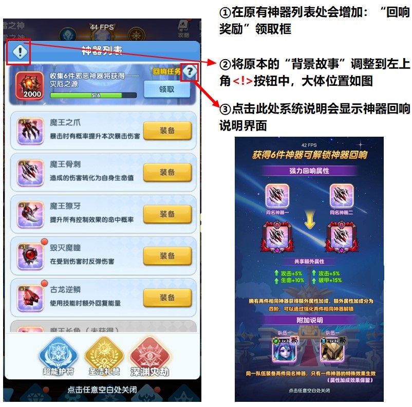 1.获得6件同类神器可解锁神器回响