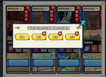 ①材料本里面的金币副本,该副本分简单、高级、噩梦、地狱难度,挑战难度越高的副本获得的金币数量越多。
