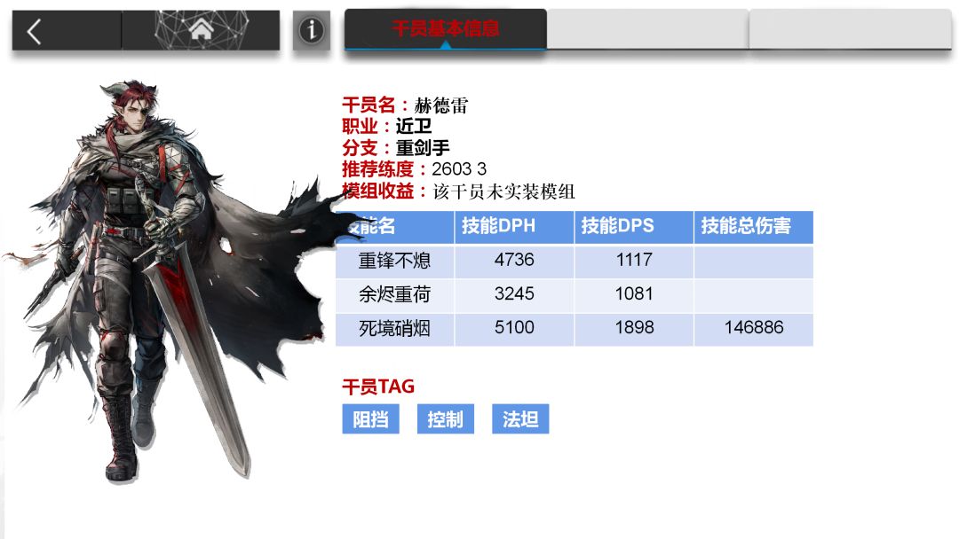 4、近卫陈的模组罗德岛制式剑可以使该技能常态回转,进一步提高赫德雷的生存能力。