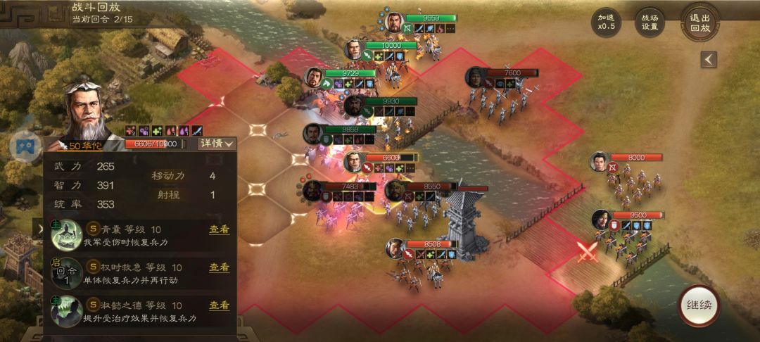 1华佗千万不要带权时救急,因为占格子,建议大家带御敌屏障,虽然是个A级战法,但是非常适合华佗,并且免伤带来的收益比增加治疗量要更高。其中一局对阵群毒的时候,对方的华佗带的纯奶战法就完全站不住阵眼,一吃伤害只能往后退,华佗一后退,就拖累前排董卓,因为董卓这个将一后退就打不出伤害,不往后退就会被快速击杀。