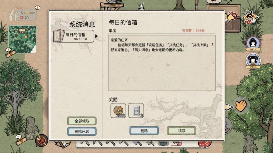 - 1.7 每日安居任务、货栈和信箱的使用