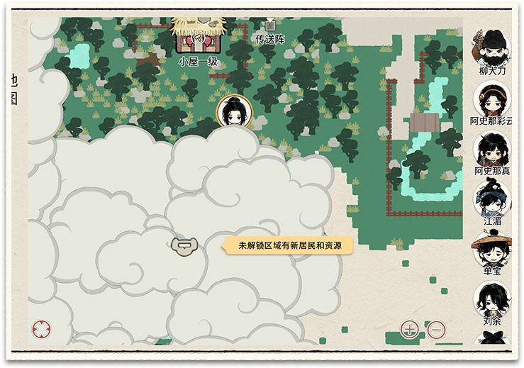 ① 靠近云雾缭绕的地方,可以解锁新的区域,新的区域会有新的资源、NPC等。、