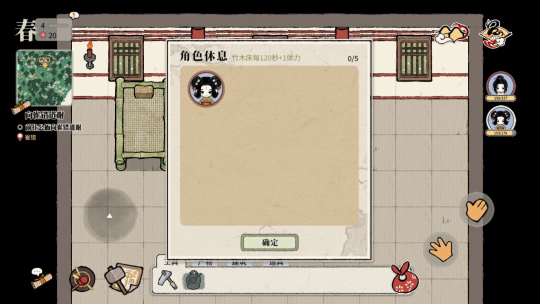 ② 把角色安排到床上休息,也可以增加体力,高级的床每分钟恢复的更多。