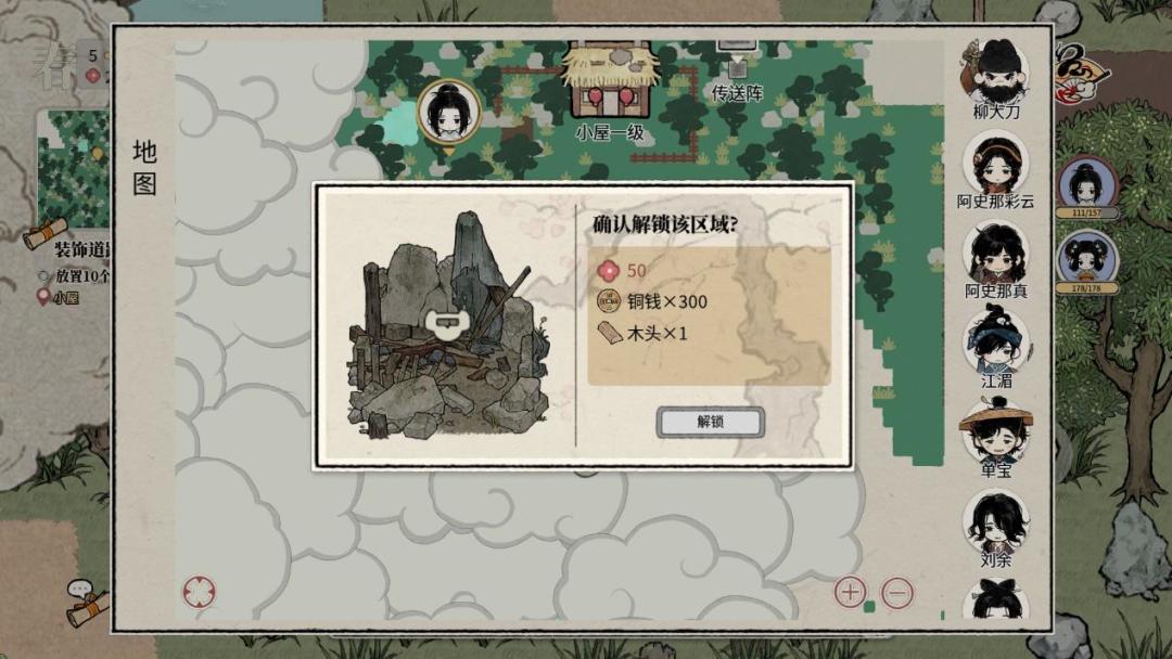 ② 玩家也可以在小地图上点击解锁,更快捷方便,但解锁需要大量的美观度和铜钱,请注意收集。