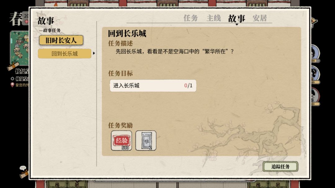 ③ 安居任务:长乐城的居民们经常会需要一些东西,可以起到一些新功能的引导作用和一些奖励。