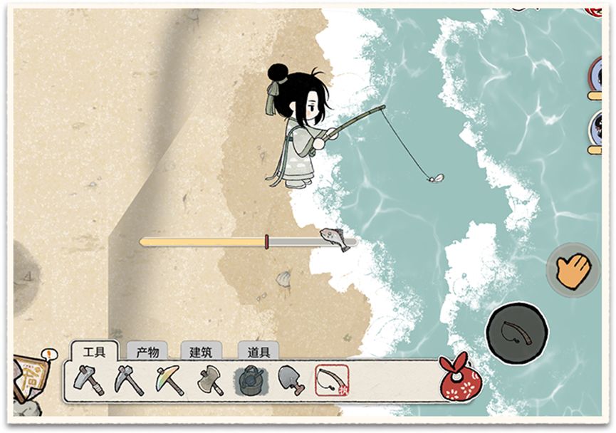 ③ 抓蟹:玩家可以将“蟹笼”放在在河(海)边,等待倒计时结束后来收获(提前收获产物也会变少)。