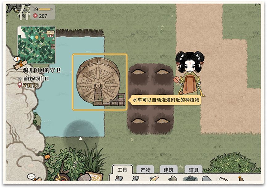 ① 水车:在水车附近的种植物可以自动浇灌,无需手动。