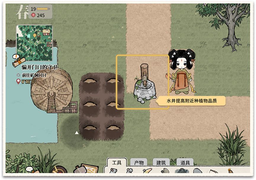 ② 水井:种在水井附近的种植物会提高“高品质获得几率”,高品质的物品在商店卖的更贵。
