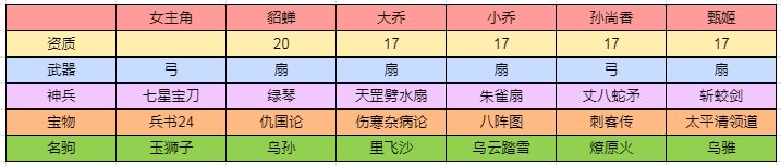 女主角+祝融夫人+夏侯涓+孙尚香+貂蝉+小乔(这其中在前期,祝融夫人可以考虑换大乔)