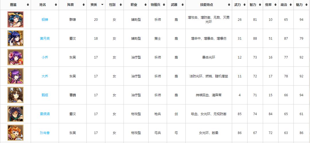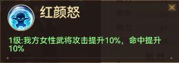 ①孙尚香,17资质,物攻型武将,被动女光环如下所示