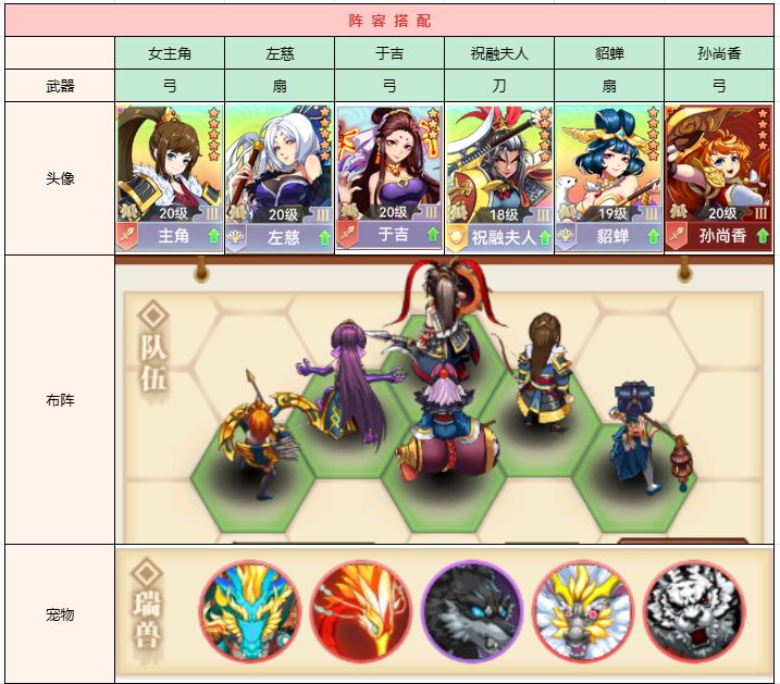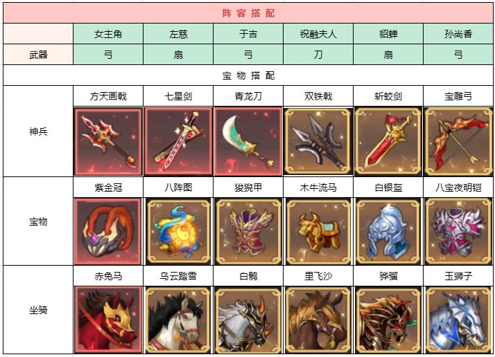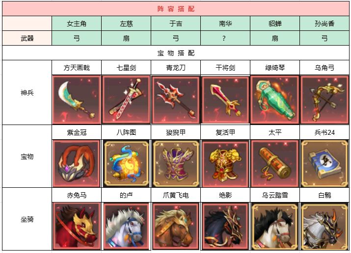 新女团阵容:女主角+南华+于吉+左慈+貂蝉+其他女将(我选的是孙尚香)