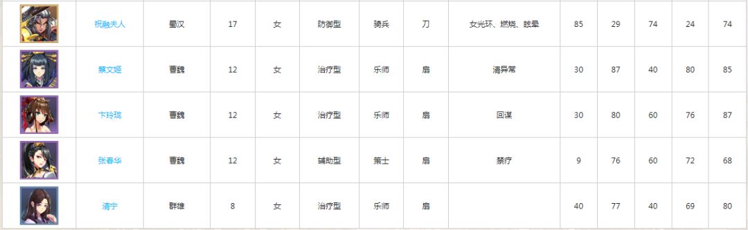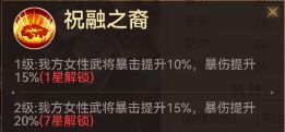 ③祝融夫人,17资质,防御型武将,被动女光环如下所示