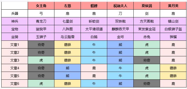 女主角+貂蝉+祝融夫人+黄月英+夏侯涓+甄姬(计划放弃孙尚香)