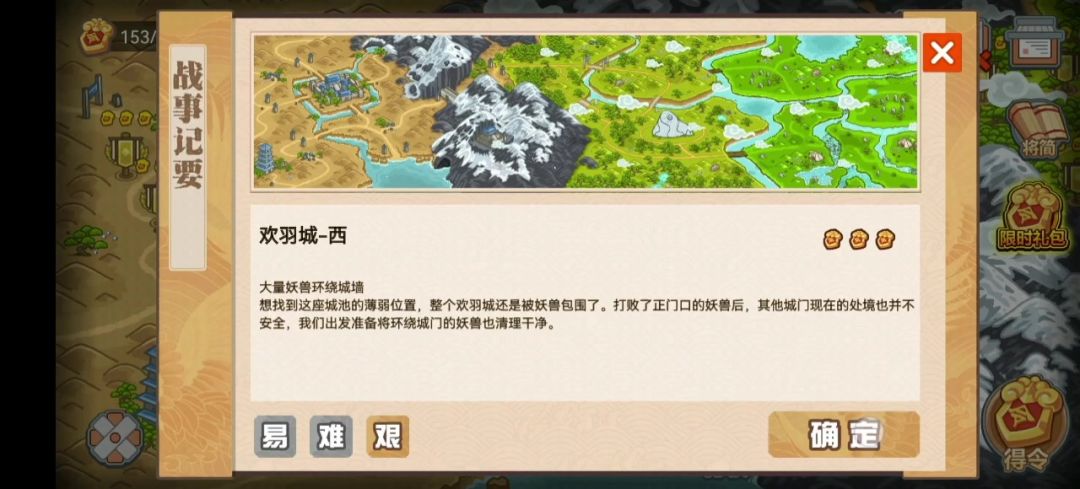 游戏到了这里已经进入了中等阶段,守关boss替换为巨斧战士,会挥出强力波,应对方法为准备80青玉,开局买四次钱并且全部用来出投石车,同时英雄在屏幕偏上方拉怪,这样可以有效减少巨斧的波秒杀后排的情况。