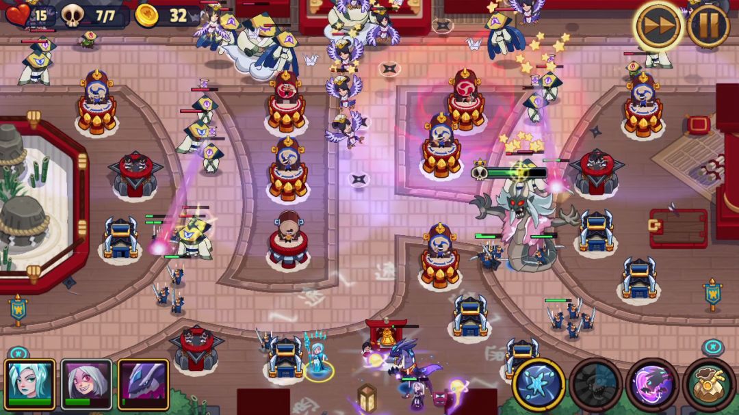 过关还是简单的 前期造圣庙攒钱 后期卖掉升级塔 右下四兵营就可以拖住boos 英雄当个挂件就好了 不需要任何道具可以轻松满星(左边最下的箭塔要换兵营 鼓塔升红鼓 正确塔位)
