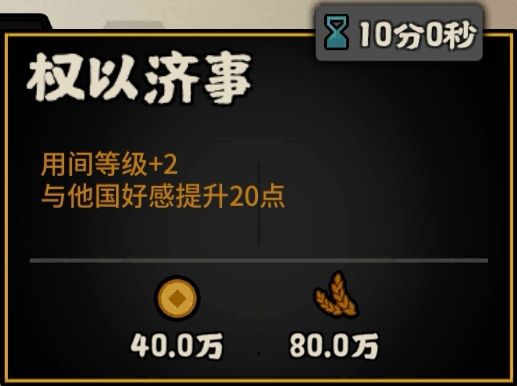 贾诩最有趣且最强的政策,本身政策对其他势力的效果可以看成是融合了陈平和班超的效果,并且作用于所有势力(我个人喜欢这个政策是因为挑战可以补兵加上也更方便做一些失国结局)。