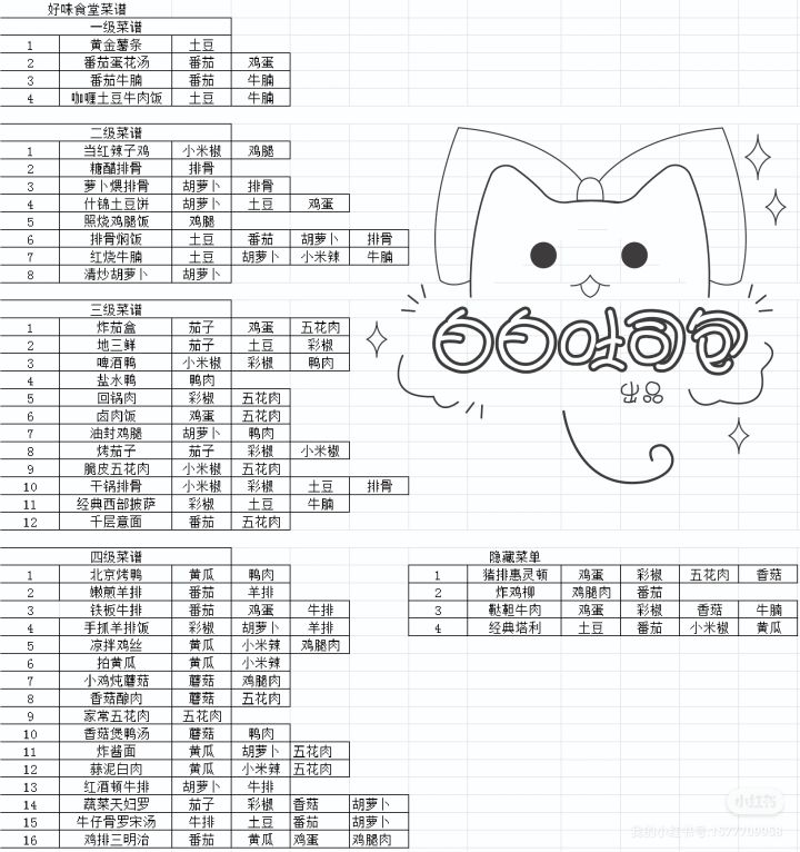 1-4级菜谱(已更新全部,隐藏菜单全)