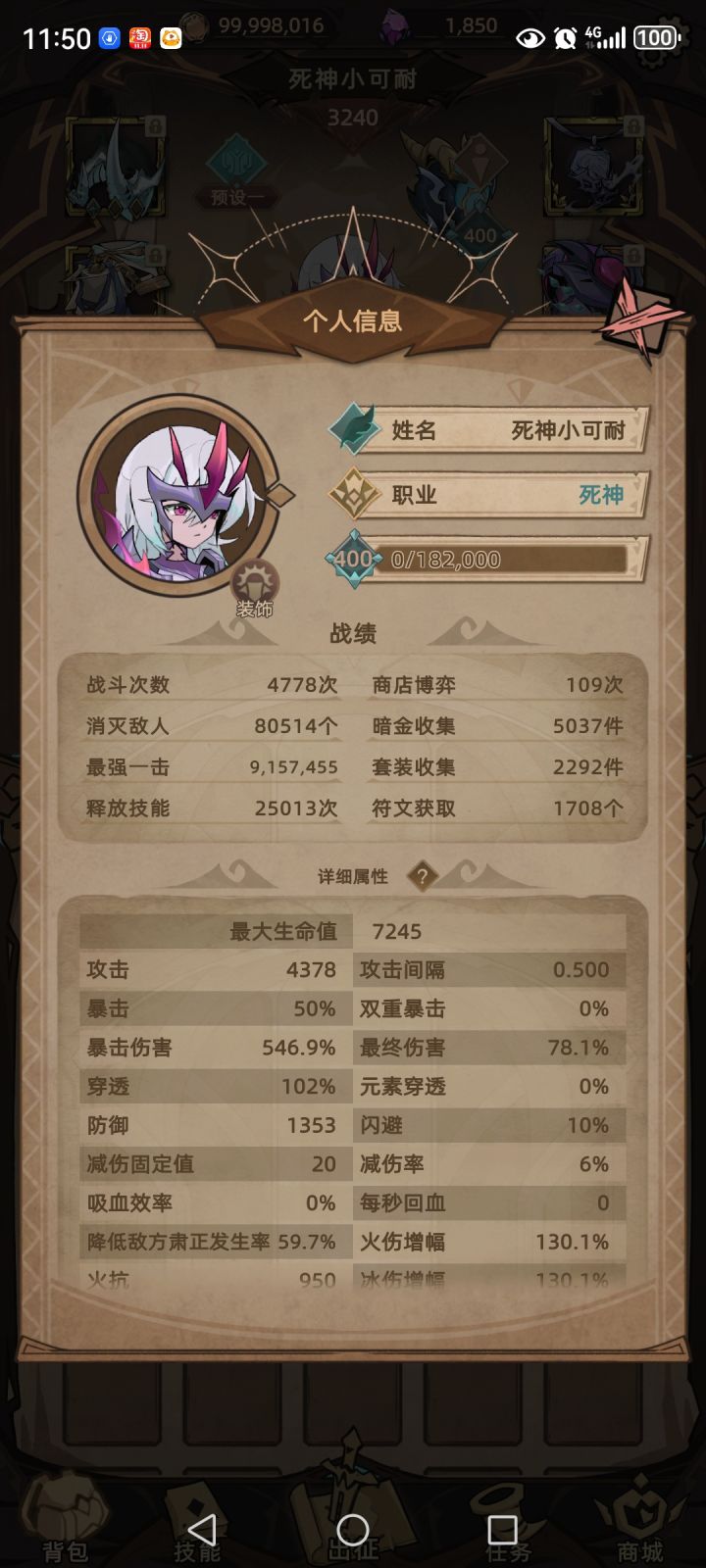2.主属性调整:根据每个职业和分支主属性进行选择,比如死神的主属性是暴伤,法师的冰法主属性是冰。