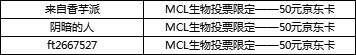 MCL生物投票限定——50元京东卡(3份)
