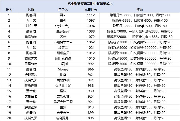 【活动】《玄中记》:玄中捉妖赛第二期中奖名单公示