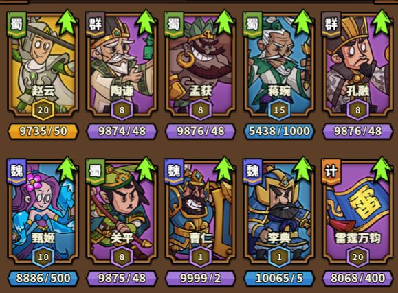 赵云、陶谦、孟获、蒋琬、孔融、甄姬、关平、曹仁、李典、雷霆万钧