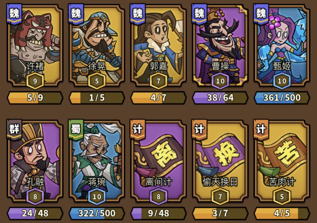 甲组配置:3-9级许褚,1-3级金卡,4-8级紫卡即可