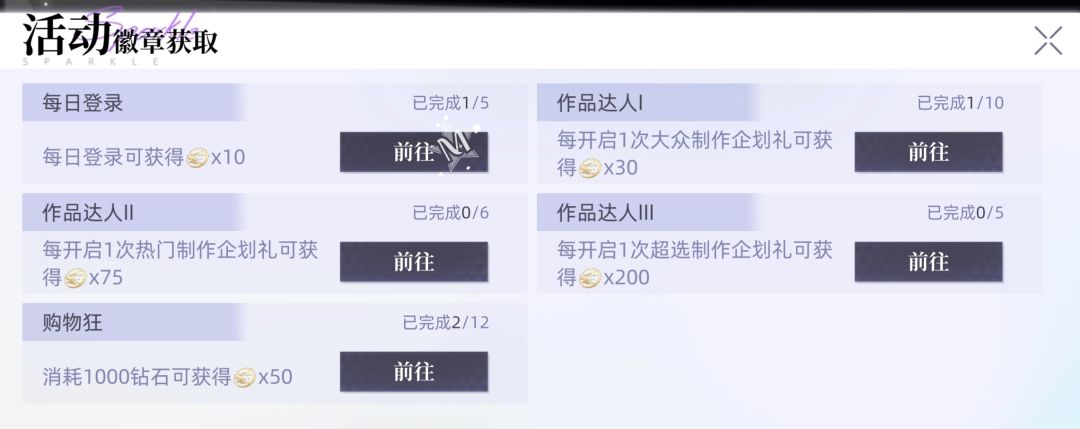 )+企划案*75+名作赞助自选*5+超选企划礼*1+大熊猫认领券*4+手工花篮*6+灵感馨束*10+星盟认证*10+兑换奖励