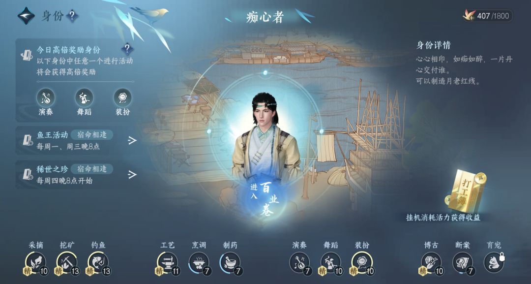注意:身份玩法升级会获得技艺点,大家记得分配技艺点哦,可以提高身份玩法的收益!