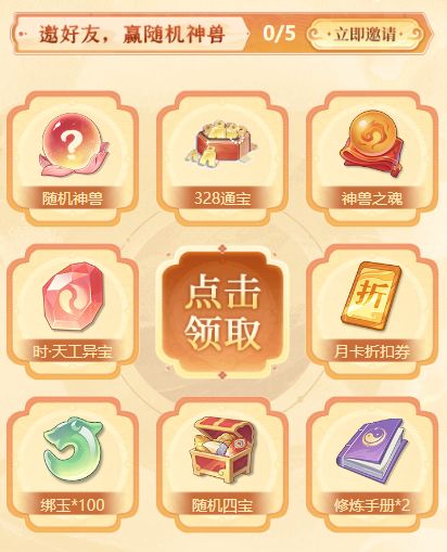 邀请好友,领更多奖励,最高赢随机神兽!