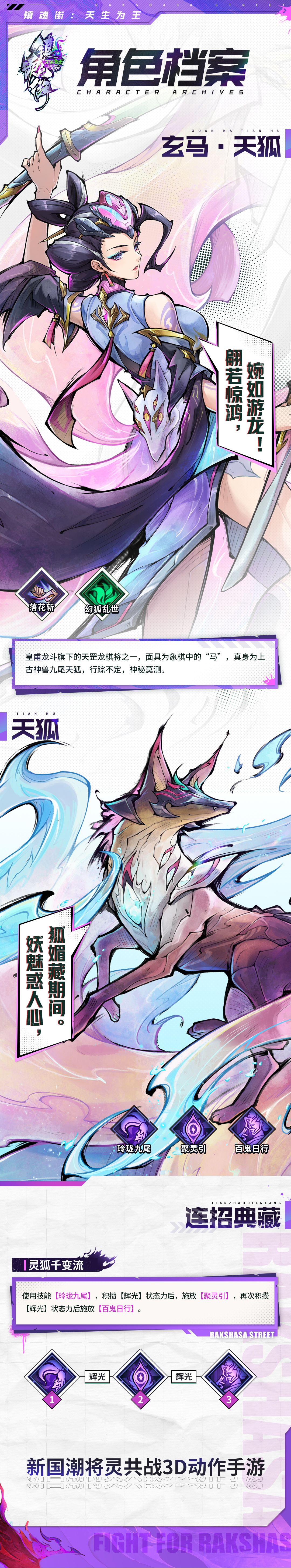 以上便是本期档案关于玄马·天狐的全部介绍啦!这位美艳神秘的龙棋将很快就会来到镇魂街,还请各位镇魂将们拭目以待,静候她的惊艳出场吧~