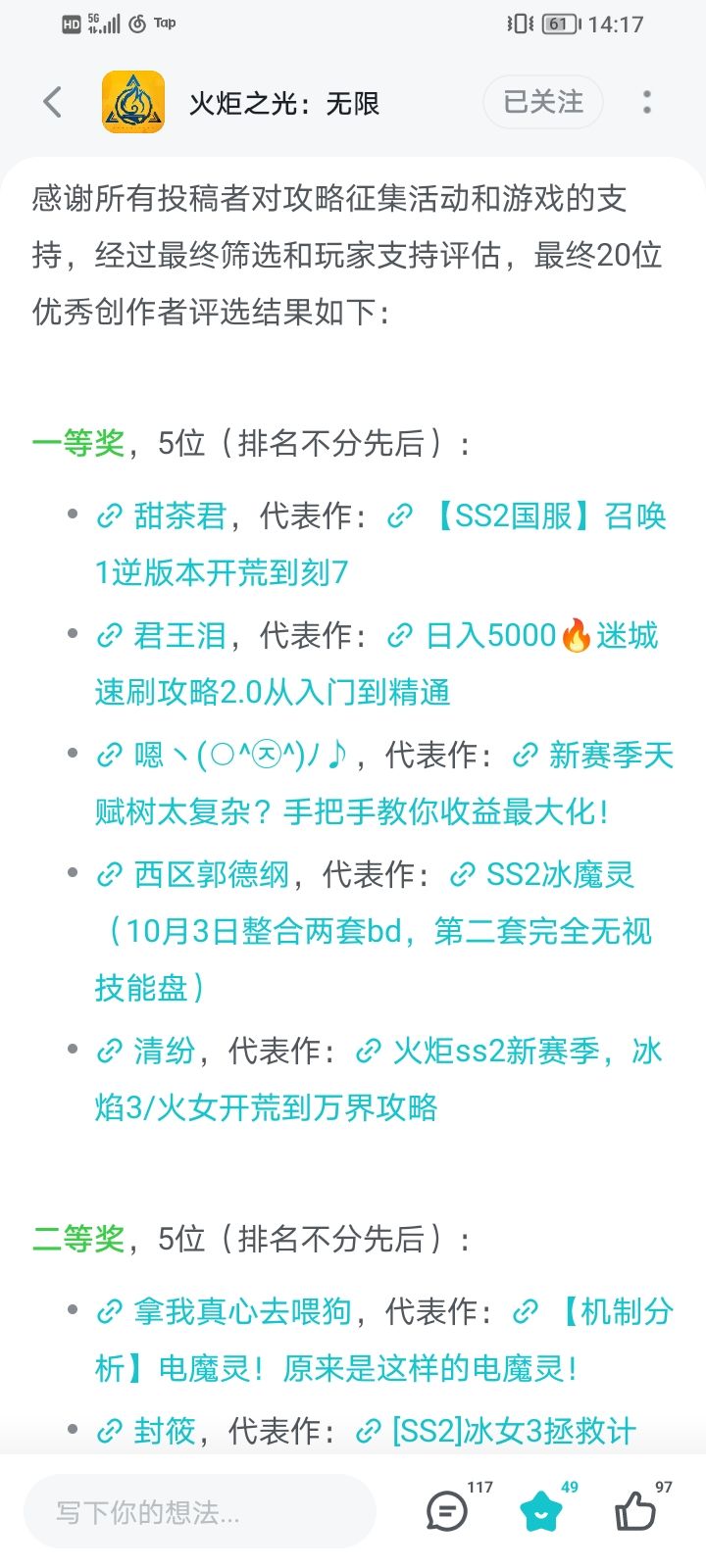 说了那么多,那这个游戏就没有精准的优秀的攻略么?答案是:有的,@B站狗叔,等等这些人(主要我也不认识只能加个等等了)。他们是真真深入了游戏的极限做出的攻略(700层,一般人就是送你装备送你bd你也刷不到,主要这得花多少时间啊),也提出bd,提出很多理论,算是真正把火炬这个赛季玩透了。