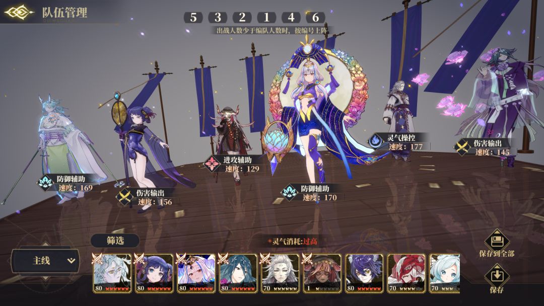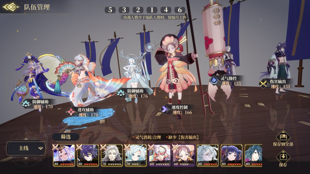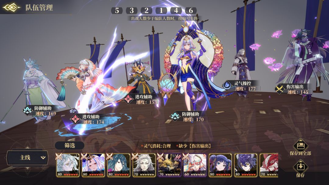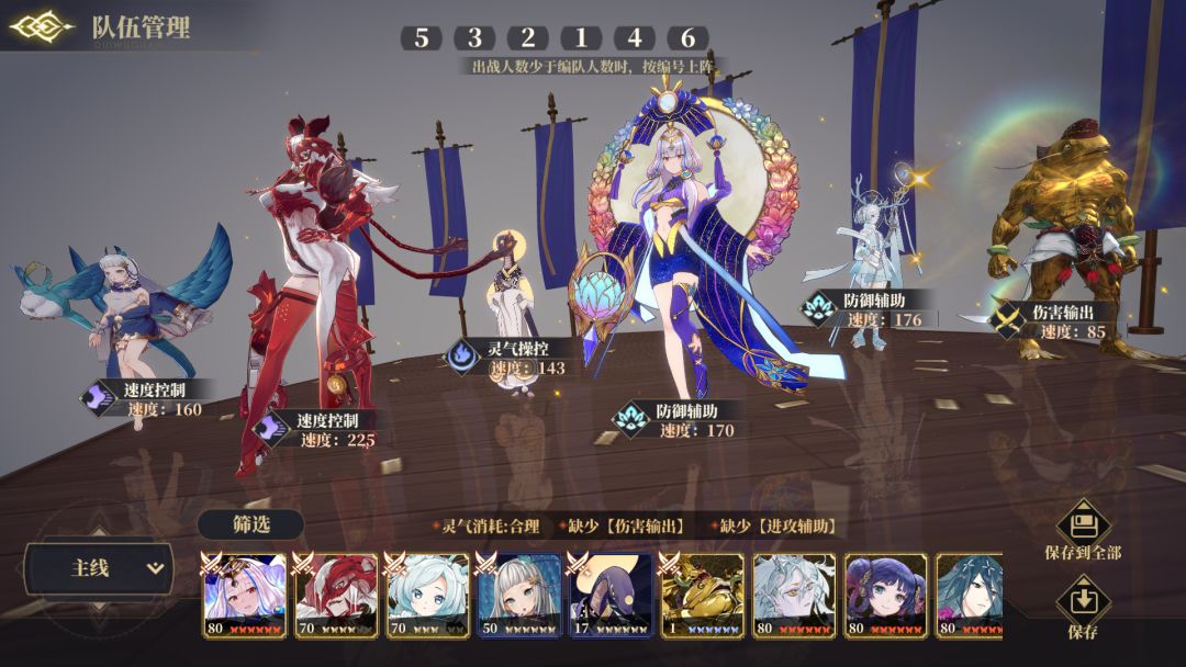 灵器:白泽、禺强、夫诸、常羲都嗷鸣,白泽四速,禺强五速避免没火,神芝钟乐,单c尾速雷神。