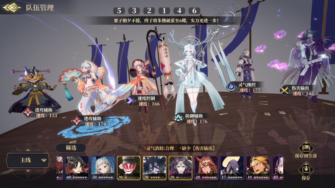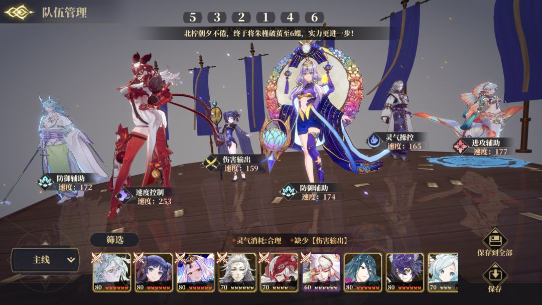 阵容机制:也很简单,就是五蝶牛点满冲灵跟齐术堆满最少85%格挡算上待机的20%达到100%格挡,再配合蜚的堆满效果命中封技能跟被动,强制怪平a夔牛,打出高达1的伤害,没有蜚怪aoe一多,第二个回合就全暴毙了。太子不封被动打特殊怪没用。白泽一速,蜚二速,夔牛、常羲随意。pvp就一速蜚开局封被动,烛光清屏,只上一个烛光的情况下可以多带个青鸟或者一速蚩黎,青鸟后手拉蜚,要是对面一速蜚就没用了,一速蚩黎、二速蜚,要是对面蚩黎还没二速蜚快的情况下就不用放蚩黎技能,放蜚就行。