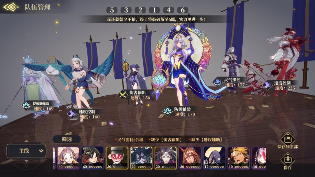 打急速就是把牛下了换神芝、白泽换了青鸟、文鳐换夫诸。通过满蝶乘皇的被动给感电并且会传承、再神芝控输出,青鸟拉乘皇二次感电,通过利用感电会刷新的特性满满的全队蝶满感电就行。夫诸、青鸟、乘黄、常羲都带嗷鸣不缺火的,以防万一就神芝也带嗷鸣。熟练后可以把常羲换文鳐补增伤,夫诸的作用就是避免第一回合就全死光了。或者用永冻队打急速把禺强换文鳐,白泽五速堆满85%效果控全队,再不断减速即可。