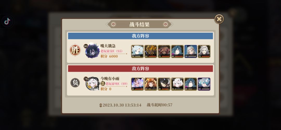 说到做到,说两小时就两小时,其实也很简单,因为战报没分的话不管什么服都是打人机,只有战报显示分数才是真人对战,你只需要一直连胜人机,并且打真人不输,那就随便六千分。