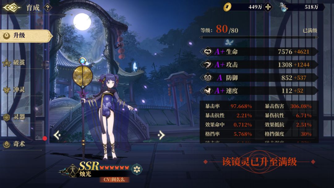 条件:五蝶夔牛、一蝶蜚、三蝶常羲、四蝶白泽、满蝶单c、烛光或者神芝